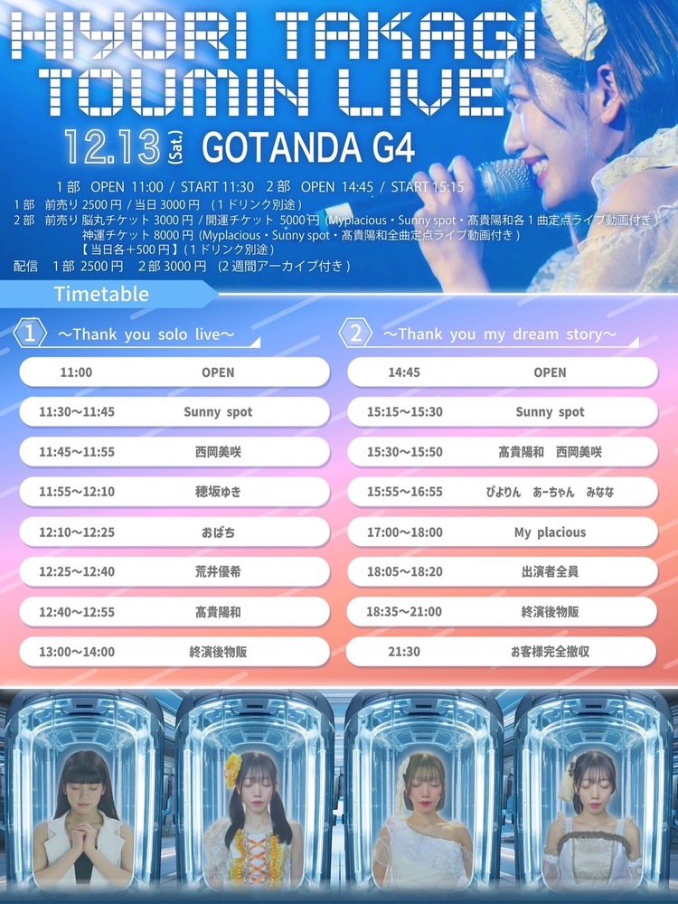 【おばちソロライブ情報】12/13(土)@GOTANDA G4『HYTORI TAKAGI TOUMIN LIVE』12:10~12:25(特典会13:00~14:00)