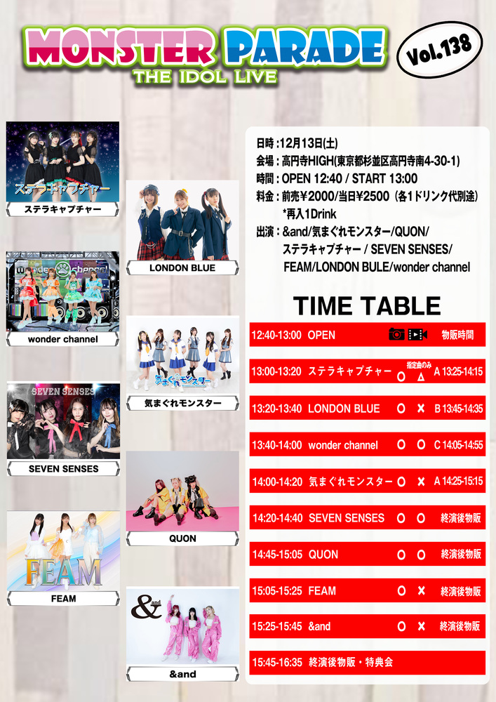 【&andライブ情報】12/13(土)1公演目@高円寺HIGH『MONSTER PARADE vol.138』&and出演15:25~15:45(特典会15:45~16:35)