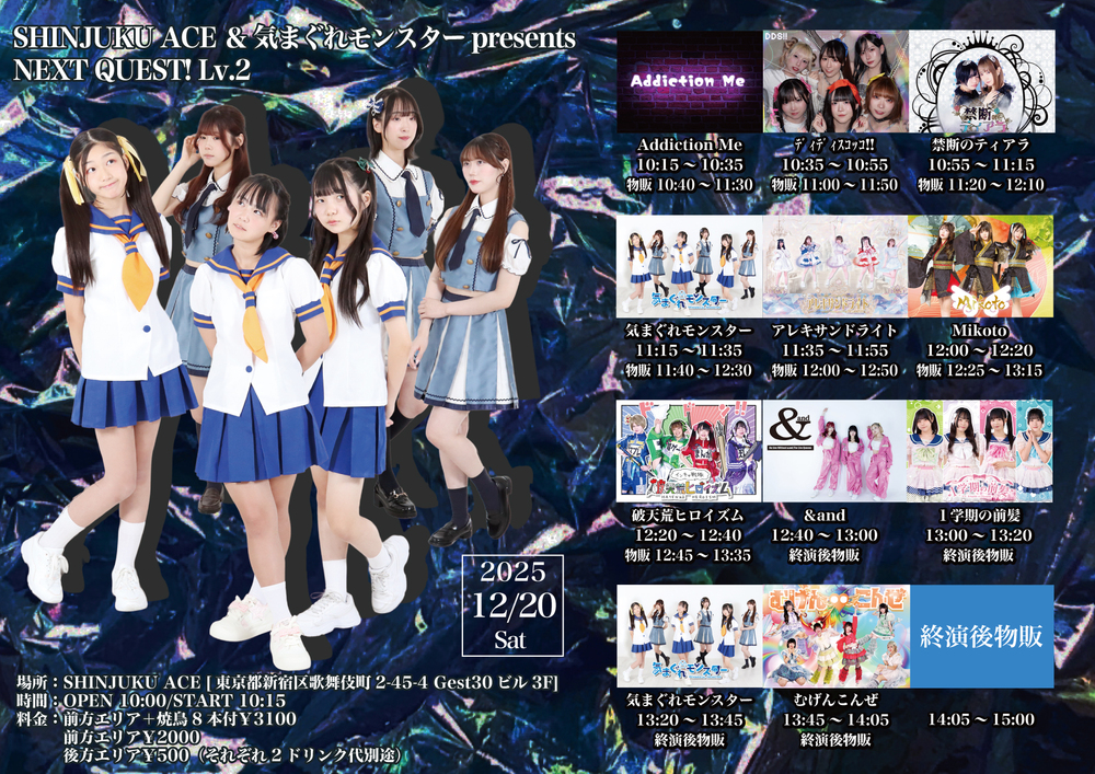 【&andライブ情報】12/20(土)2公演目@新宿ACE『SHINJUKU ACE×気まぐれモンスターpresents NEXT QUEST Lv.2』&and12時後半出演予定